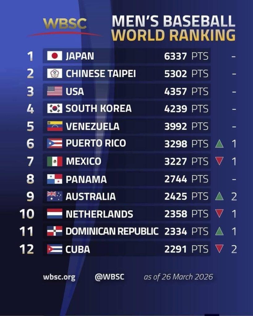 El ranking actual refleja también el crecimiento de otras naciones que han invertido en el desarrollo del béisbol y han logrado resultados consistentes en los últimos años.