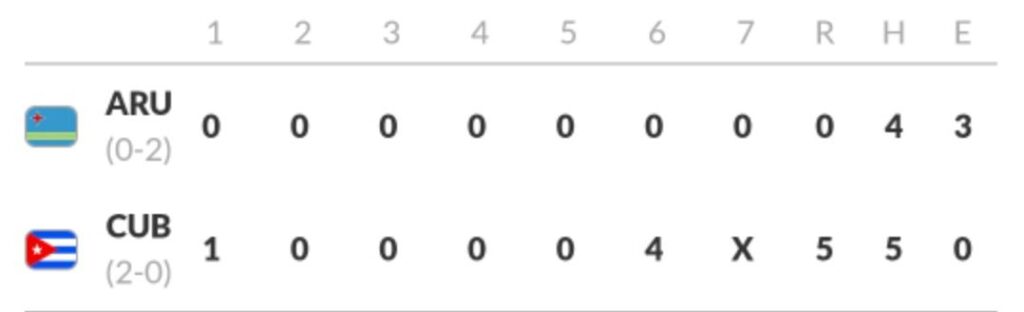 La selección sub-23 de beisbol de Cuba derrotó a su similar de Aruba con marcador final de 5×0 en la segunda jornada del torneo Panamericano de la categoría que se esta desarrollando en Panamá.