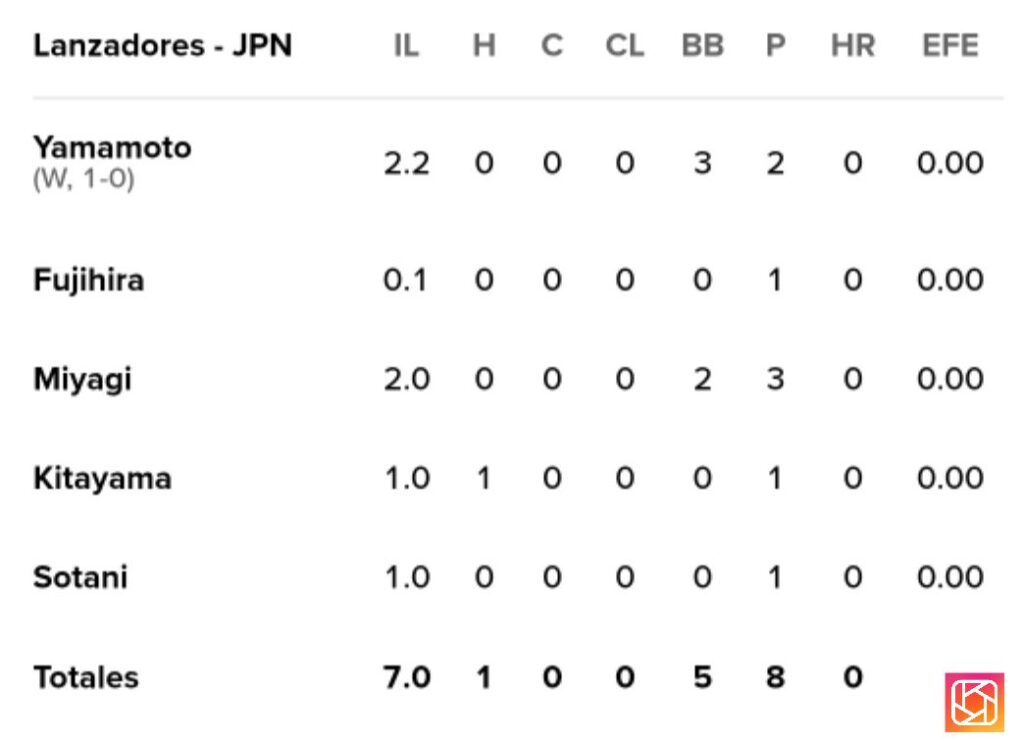 ▪︎ El picheo de Japón se combinó para no permitir carreras y solamente soportó un hits.