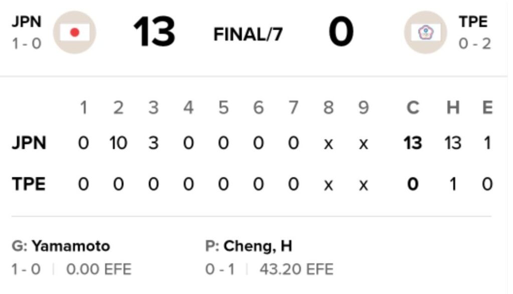 ▪︎ WBC’26 JAPÓN 🇯🇵 13-0 🇹🇼 TAIPEI DE CHINA