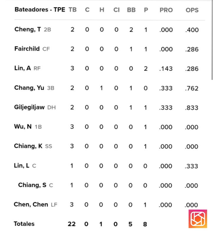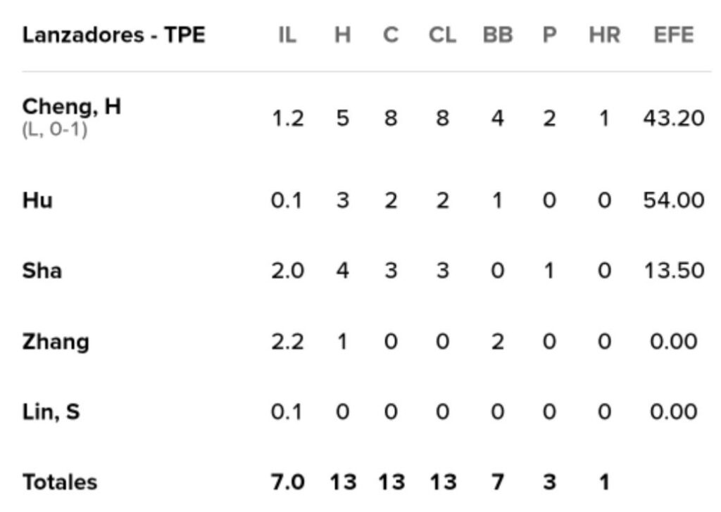 ▪︎ Taipei de China ahora lleva 16 entradas sin anotar carreras ya que han perdido sus dos primeros compromisos por la vía de la lechada .