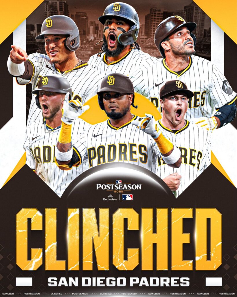 SAN DIEGO PADRES : DIVISIÓN OESTE DE LA LIGA NACIONAL- SEGUNDO COMODÍN DE LA LIGA NACIONAL Y SERÁ EL SEMBRADO NÚMERO 5 Y ESTARÁ DISPUTANDO LA SERIE WILD CARD.