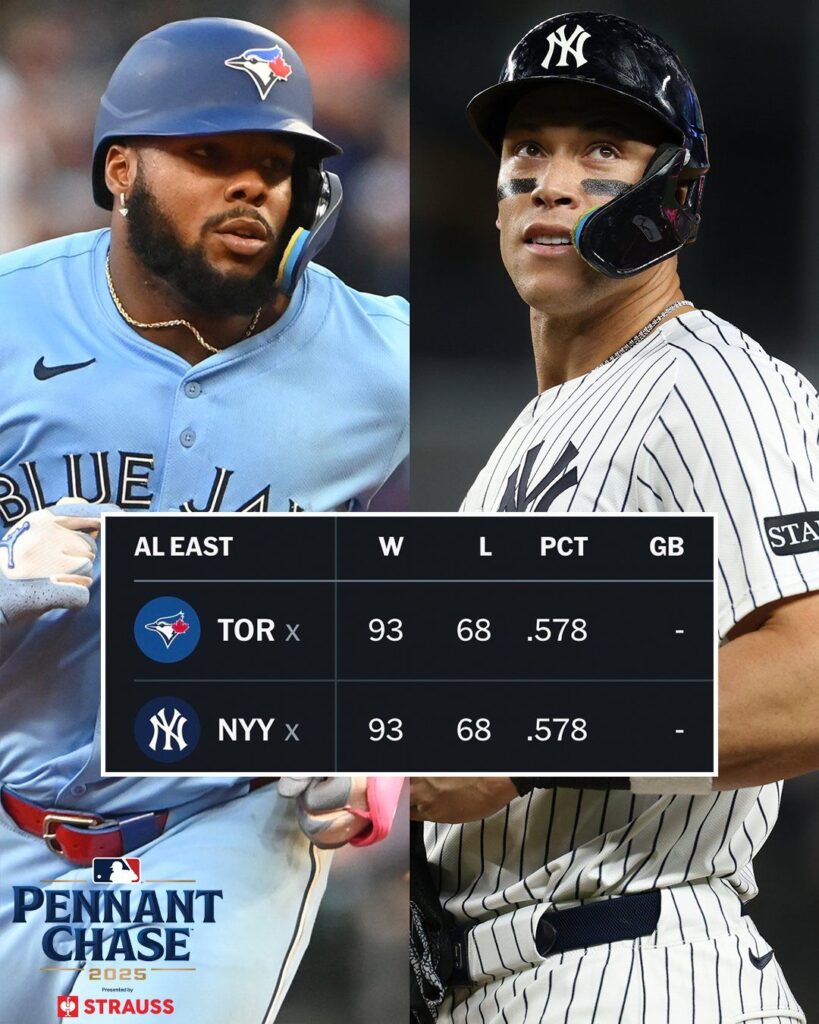 ▪︎ Toronto Blue Jays si pierde su juego y los New York Yankees no ganan se proclamara campeón de la División Este de la Liga Americana porque le favorece el desempate y sería el SEMBRADO NÚMERO 1 DE LA LIGA AMERICANA.