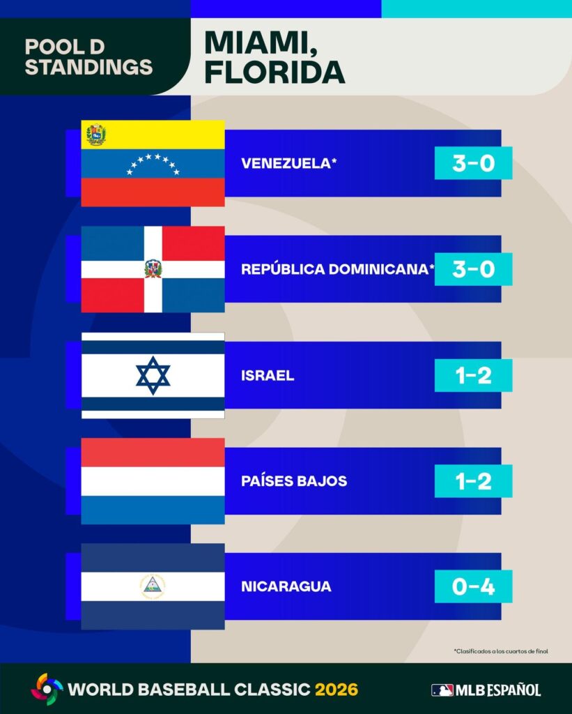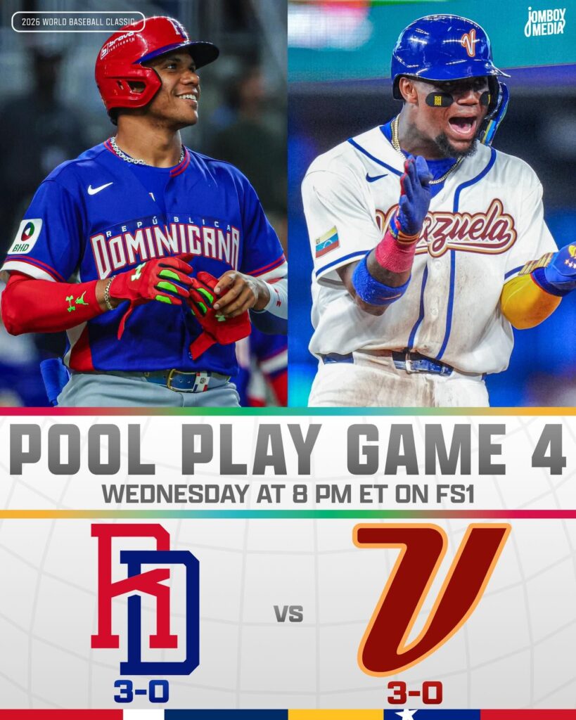 Máxima tensión la que se vivirá este miércoles 11 de Marzo en el LoanDepot Park en la ciudad de Miami cuando se enfrenten las novenas de República Dominicana y Venezuela en busca del liderato de la llave D del Clásico Mundial de Beisbol en su edición del 2026.