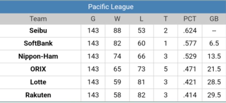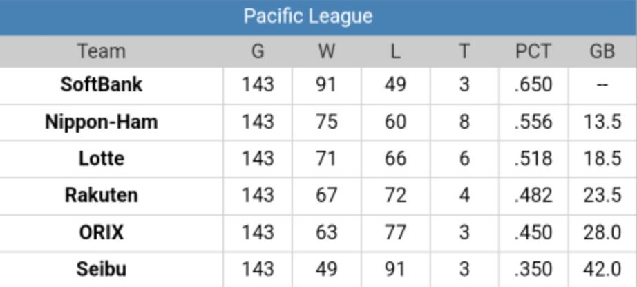 La temporada regular del 2025 de la Nippon Profesional Baseball ( NPB ) ha llegado a su fin y los Fukuoka Softbanks Hawks se llevaron el título en la Liga del Pacífico y además fueron el equipo que mas victoria lograron de todo el circuito japonés.