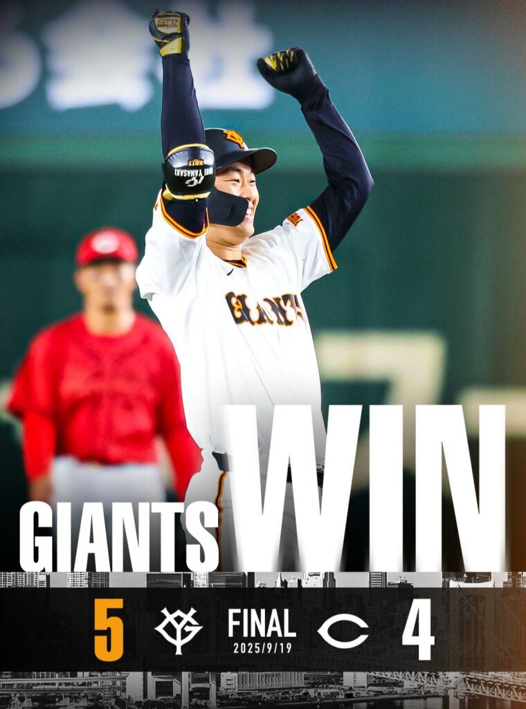 Los Hiroshima Toyo Carp anotaron dos carreras en la primera entrada para tomar ventaja en el marcador pero los Yomiuri Giants remontaron el juego agregando una carrera en la segunda entrada , adicionaron dos más en la cuarta y certificaron la victoria con otras dos anotaciones en la sexta entrada , los Hiroshima fabricaron dos carreras en la séptima entrada para acercarse en el marcador pero el juego terminaría con la victoria de los locales por la mínima diferencia, el diestro Iori Yamazaki trabajo durante 6 entradas y dos tercios donde permitió 4 carreras y propino 8 ponches para llevarse la victoria, el mejor bateador por los Yomiuri Giants fue su estrella Kazuma Okamoto quien bateo de 4-3 con dos home runs e igual número de carreras impulsadas ,el cubano Raidel Martinez trabajó en la novena entrada y se apuntó su salvamento número 43 de la temporada para establecer un nuevo récord en este acapite dentro de la franquicia de los Yomiuri Giants.