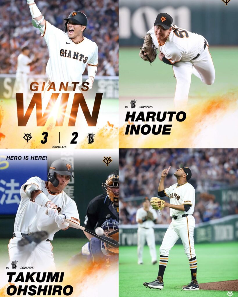 Este domingo los Yomiuri Giants derrotaron 3-2 a los Yokohama Dena Baystars en el mítico Tokyo Dome para ganar ( 2-1 ) el primer compromiso particular entre ambos equipos en la temporada del 2026. El juego transcurrió con dominio de ambos lanzadores abridores, los Yokohama Dena Baystars se adelantaron en el marcador en la cuarta entrada al anotar una carrera producto a un Home Run del tercer bate Keita Sano, pero en la conclusión de la séptima entrada los Yomiuri Giants anotaron sus tres anotaciones gracias  a un home run de Takumi Ohshiro quien vino como bateador de emergente y logró conectar un vuelacercas con dos compañeros en circulación. En la novena entrada los Dena Baystars pudieron descontar una anotación sobre los envíos del cerrador Raidel Martinez quien hacia su debut en la temporada del 2026 de la NPB , en este juego también vio accion por los Dena Baystars el cubano Dayan Viciedo quien estuvo como quinto en el orden al bate y produjo de ( 3-1 ) .