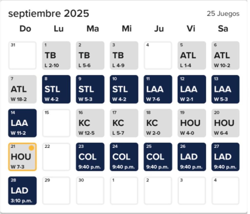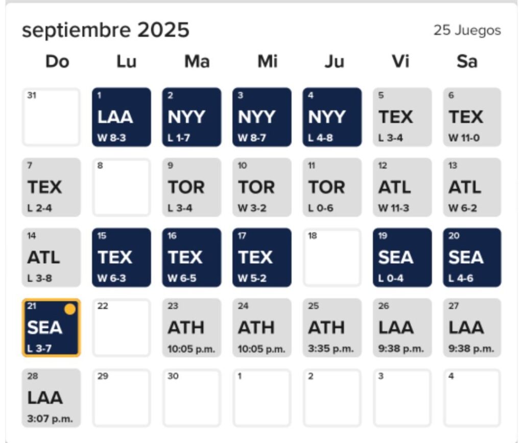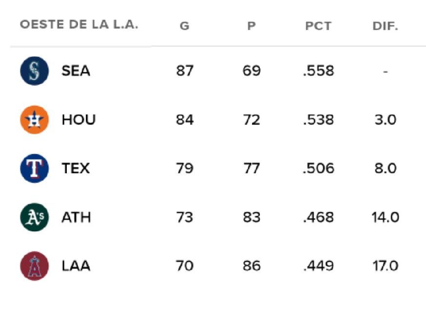 Los Houston Astros pudieron barrer a los Texas Rangers a inicio de semana para continuar en la porfía por el título de la división pero realmente se vieron superados en todas las líneas del juego por unos Seattle Mariners que sueñan en grande, los Siderales deberán concentrarse en alcanzar uno de los cupos del Comodín que dan acceso a la postemporada para ellos deberán vencer a los Atlhetics y los Angeles Angels como visitante ,su avance a la postemporada del 2025 de la MLB dependerá de obtener buenos resultados durante la última semana de competencia.