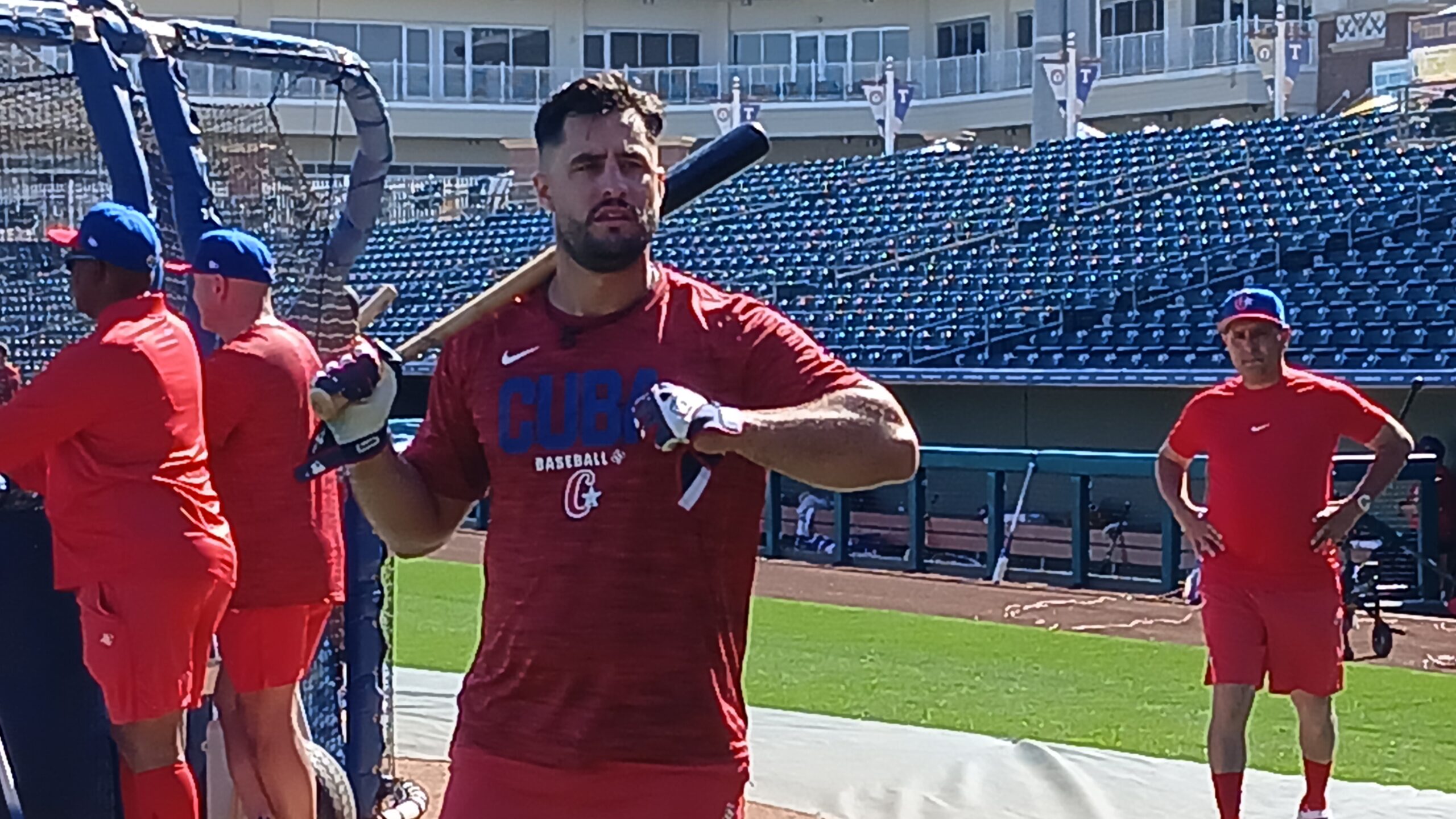 Práctica de bateo del equipo Cuba en Arizona.