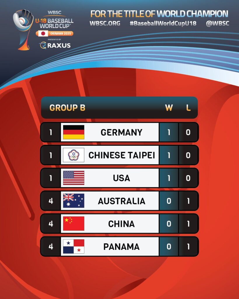 El Campeonato Mundial de Béisbol Sub-18 dio inicio en la jornada de hoy en la Prefectura de Okinawa, Japón, los grandes favoritos a ganar la corona de este evento se impusieron y la mayor sorpresa fue la victoria de Alemania ( puesto # 19 Ranking Mundial ) sobre Australia ( puesto # 10 Ranking Mundial )