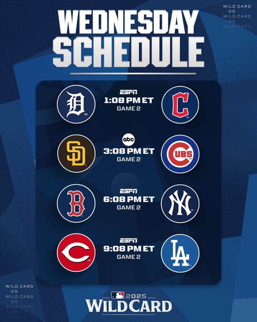 Ha terminado la temporada regular del 2025 de las Grandes Ligas de los Estados Unidos, de 30 equipos que iniciaron la campaña solamente quedan 12 en competencia,  de ellos 8 estarán disputando la serie WILD CARD donde avanzarán los 4 ganadores de cada cruce a las SERIES DIVISIONALES.