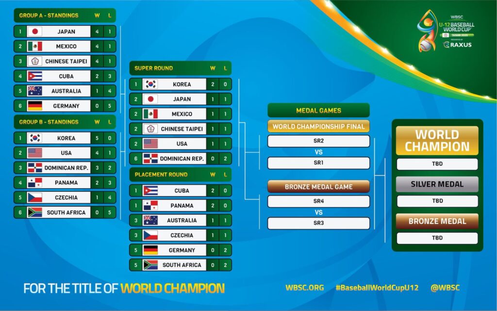 El VIII Campeonato Mundial de Béisbol Sub-12 entra en su etapa decisiva y a partir de este jueves 31 de julio se estará disputando la Super Ronda que agrupara a las 6 mejores selecciones del mundo, a esta instancia se clasificaron 3 equipos por cada uno de los dos grupos en competencia. Será una disputa entre el Continente Asiático y Americano puesto que cada uno tendrá a tres representantes en la instancia decisiva del torneo .