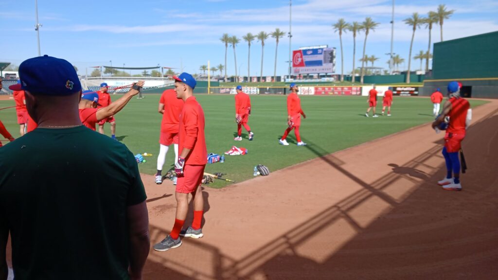 Último día de práctica, esta vez en el campo de entrenamiento del equipo de los Rojos de Cincinnati. Una preparación para que su director Germán Mesa pueda ver a todos los muchachos y en las condiciones físicas en las que se encuentra para hacer su debut el 6 de marzo frente a Panamá en San Juan Puerto Rico.