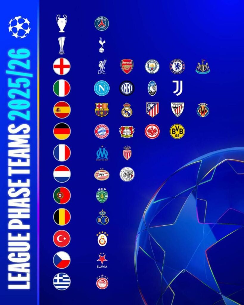 Todavía en las retinas de los seguidores del más universal de los deportes esta la imagen de la proclamación del Paris Saint Germain como el campeon de la Liga de Campeones de la UEFA en la temporada 2024/25 , pero el tiempo no se detiene y arribamos al mes de Agosto fecha en que inician las principales ligas domesticas europeas y también se abre la temporada de clubes en el viejo continente y con ella una edición más de la UEFA CHAMPIONS LEAGUE .